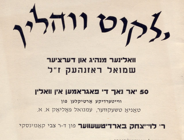 כותרת הילקוט המלאה: ילקוט ווהלין דריטער באנד זאמלהעפט 20 תאריך הוצאה עברי: חשון תשכ"ו תאריך הוצאה לועזי: נובמבר 1965